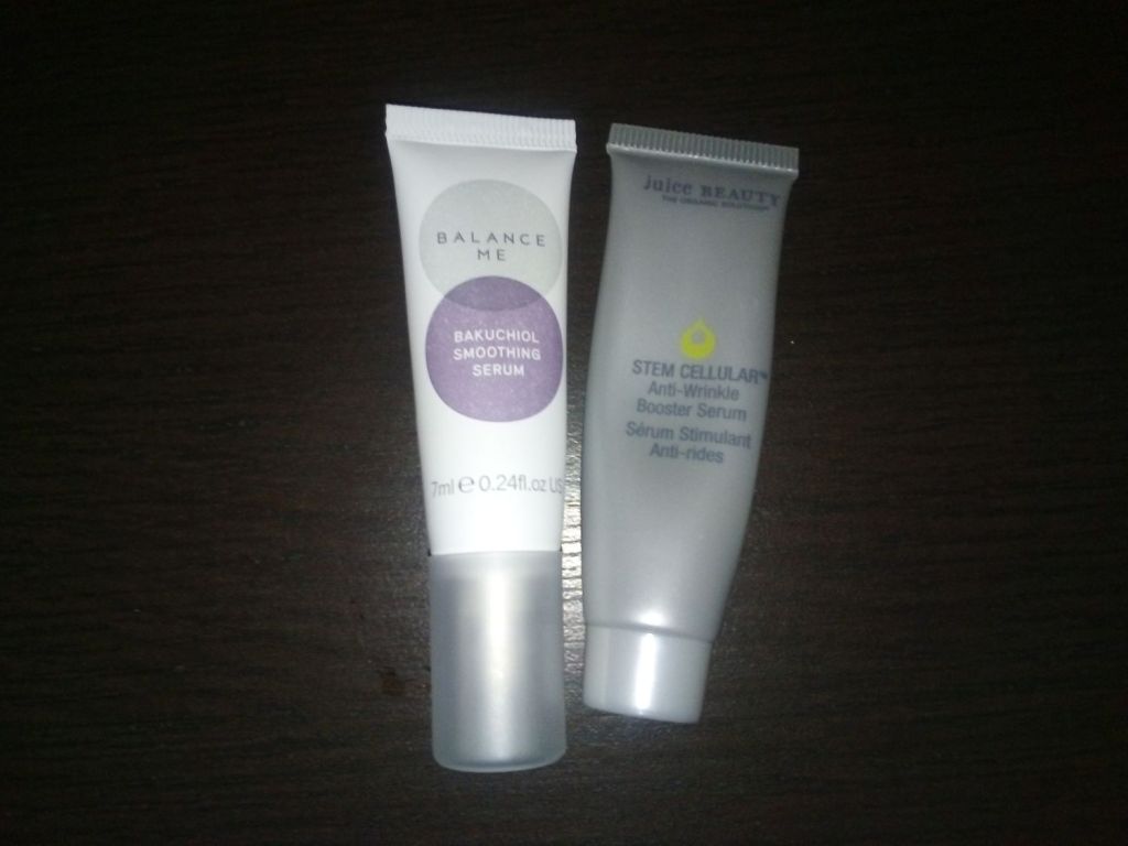 Keeping up with products I got from beauty boxes, these two serums I used only for about a week each (applied once a day), so I didn’t think a full review is necessary. I think they were both nice, but the Juice Beauty serum I liked more because the skin felt visibly plumper and smoother each time I applied it. The Balance Me serum was more so-and-so, meaning that it didn’t impress me much.