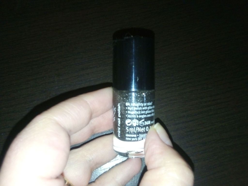 I got this nail polish in last year’s advent calendar but I rarely used it because it has such a weird texture. The glitter in it is very gritty and it feels harsh on the nails. I like a good shimmery black nail polish, but not with this finish, so it’s time to let it go.