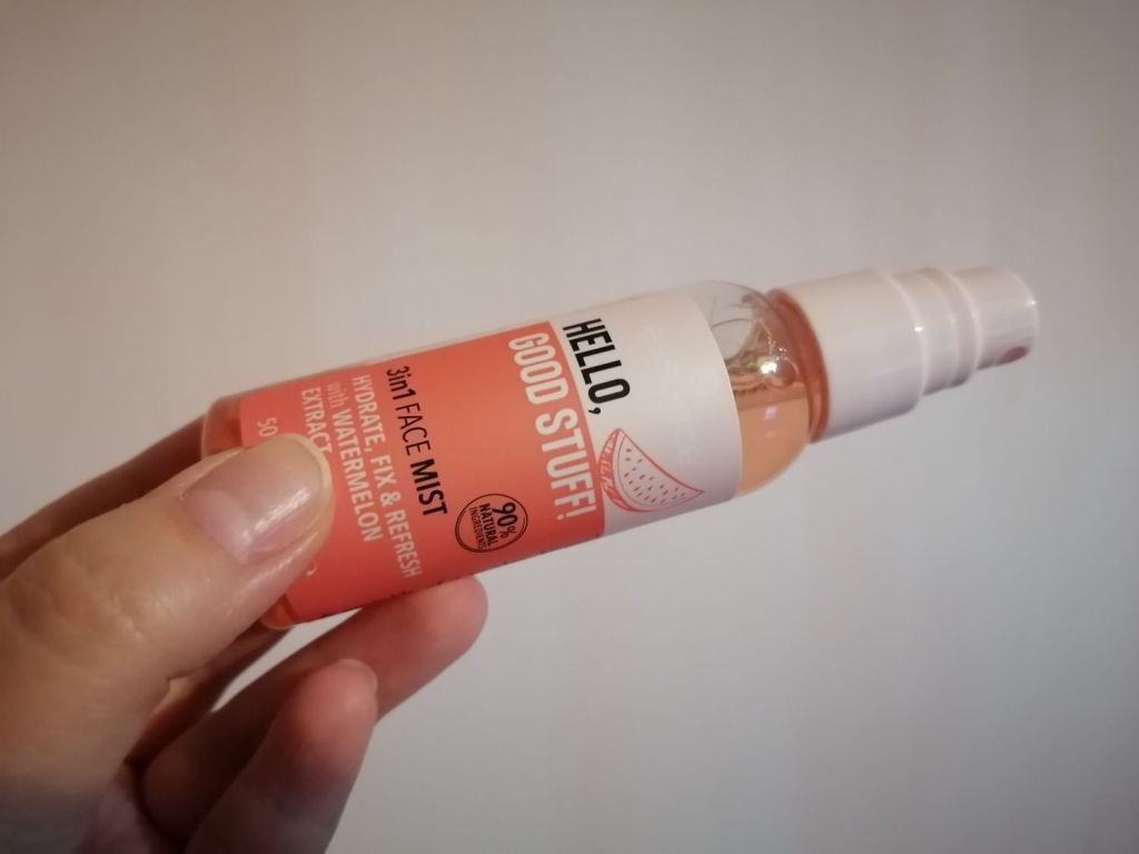 This was a watermelon scented face mist so I had to try it because I love everything that smells like watermelon (and the fruit itself of course). The product comes in a plastic bottle with a sprayer that contains 50 ml. I got it for about 3 euros, so it’s also a very affordable product. The face mist is pink and it feels just like water on the face.