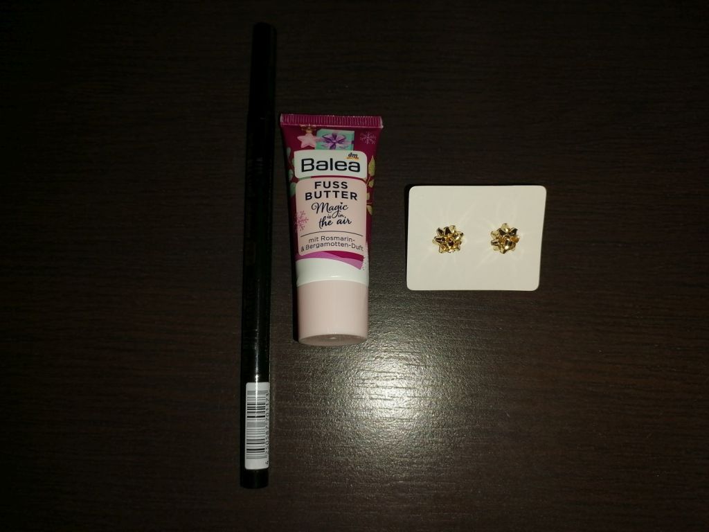 In the Sinsay advent calendar there was yet another pair of earrings, this time a pair of golden presents bows as far as I can tell, or maybe they’re some kind of flowers, I don’t know. I like them but I won’t wear them because my right ear lobe was so irritated after earing some of the earrings at work for a few days that I don’t have the courage to try them again. So unfortunately they’re useless for me.