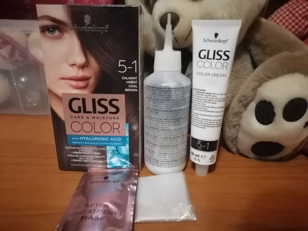 I’m the type of person that doesn’t always stay faithful to a hair color because I think that I should always look for better and better options. I always choose a cool brown color because I don’t like the red undertones in warm brown colors and I always want something that covers well the few grey hairs I have and that is long-lasting so I don’t have to color my hair every month, just every other month. I used L’Oreal hair colors for a long time but the no ammonia variants were just semi-permanent hair dyes (which is something that doesn’t say on the box, I found out from their website), then I switched to Wella, a professional hair dye but it was a little bit difficult to find and I always had to buy the activator separately, plus some gloves because I always make a mess, so it was a hassle. Now, this is the second time that I used the Gliss hair dye, a recommendation from a friend, and I liked it so for now it will be my current favorite hair dye.