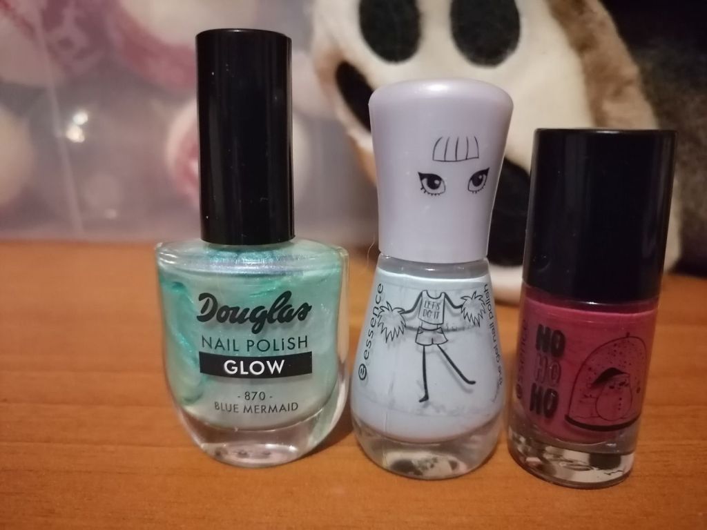 Douglas Glow nail polish in 870 Blue Mermaid – it’s a color that I just don’t use often, plus it looks funky by now because it’s old.