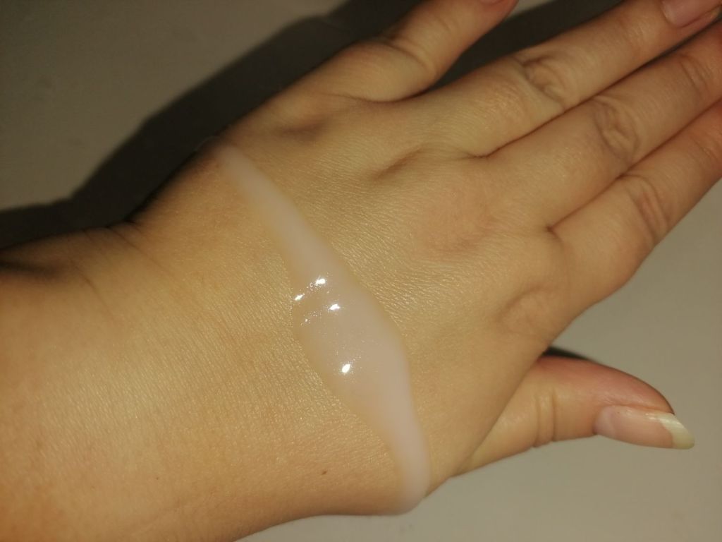 The texture is a milky one, it feels a little more on the thick side and it looks white but it doesn’t have any particular smell. I can’t say that I like how it feels a little bit sticky after applying it, but since I apply a moisturizer over it, it doesn’t bother me that much. It absorbs very fast into the skin.
