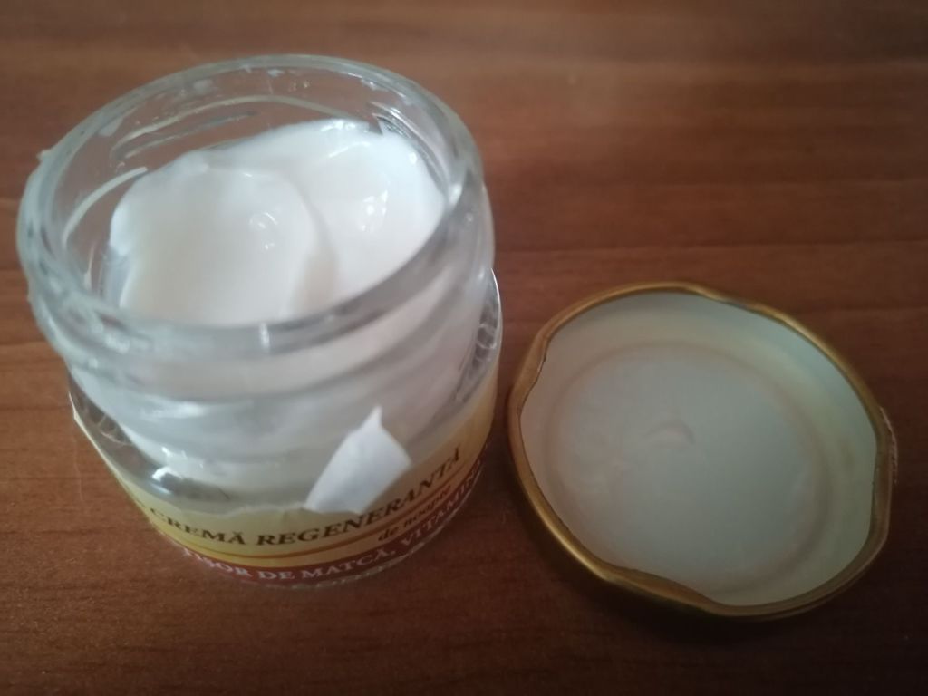 The royal jelly has regenerating properties and vitamins A and E are great for anti-aging. It’s a very nice face cream with a basic formula.