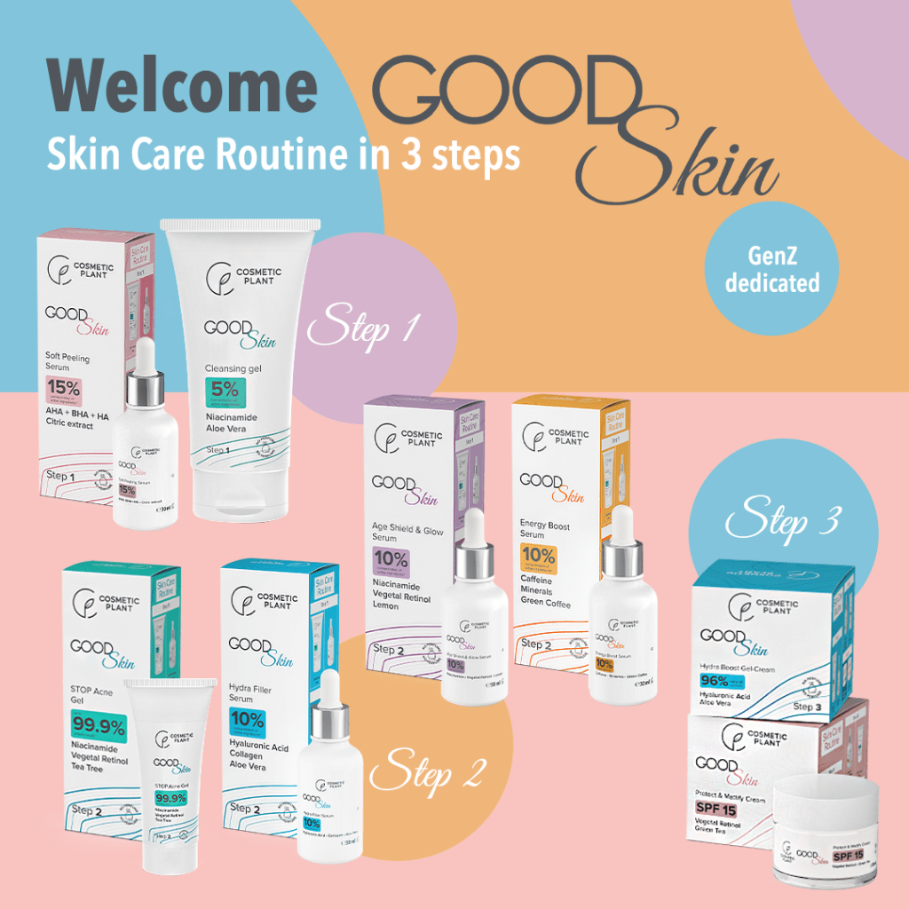 GOOD Skin meets the care needs of young people (18-35 years) with normal, combination or oily skin with a daily routine that provides personalized solutions, from A to Z. Thus, the assortment of gels, serums and creams in the range offers the possibility to create dedicated daily routines for specific needs – from hydration, energization, brightness, to reducing acne or preventing the appearance of wrinkles.