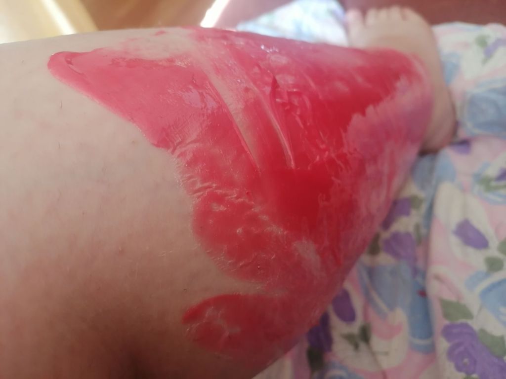 Pardon my chubby leg, but that’s how the wax looks when applied. To be honest, I don’t know if the device makes it hot enough because I can apply it right away on the leg without burning my leg. Also, the wax has a strange consistency, it looks like liquid plastic. I mean, I know how hot wax looks and that’s not it.