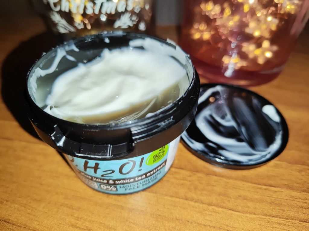 Since this is a hydrating face mask it contains many hydrating ingredients, aloe vera juice and white tea extract being the key ingredients. Other important ingredients are cocoa butter, jojoba seed oil, sweet almond oil, argan oil and vitamin E. This doesn’t sound like something for oily and combination skin, but I like to use hydrating masks as well, especially during winter and after I’m using a peeling serum.