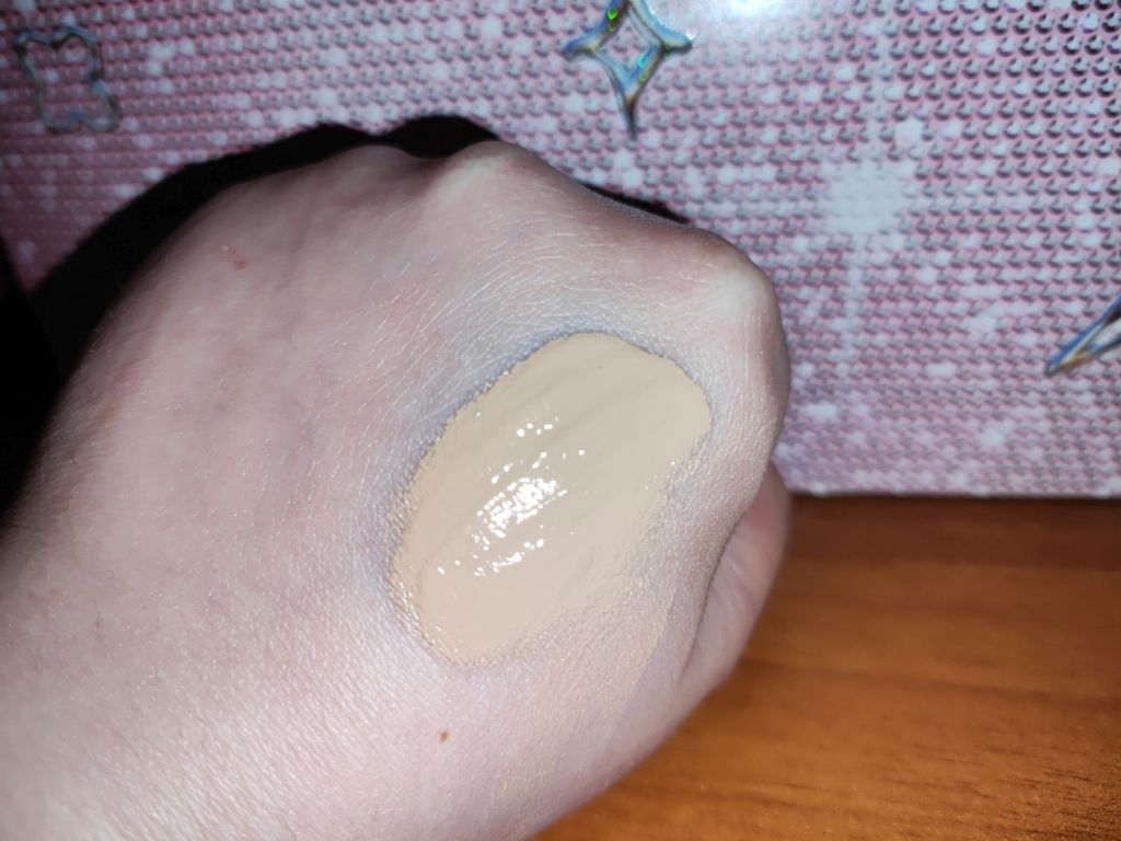 The foundation comes in a glass bottle with a pump and it contains 30 ml. I love foundations with pumps, I mean it’s 2025, why still make tubes and bottles without pumps because it’s not hygienic to use them. The design is rather simple, a bright red lid and some red and writing on the bottle, but it’s a drugstore product, it’s not like I have many expectations. The pump works and the bottle feels heavy, opposed to the cheap plastic ones, so I’m happy.