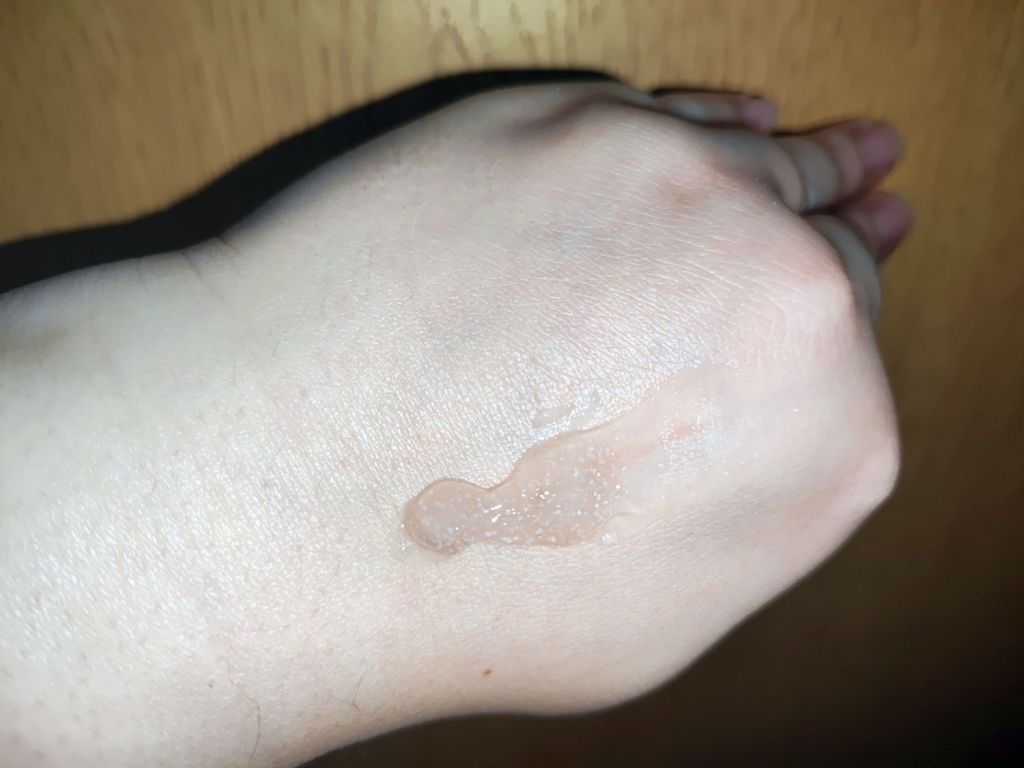 This is a bamboo-based body scrub, so it has a grainy texture a light pink clear consistency and it smells delicious. It’s rose-scented, so that’s something to keep in mind for those of you who don’t like the smell of roses.