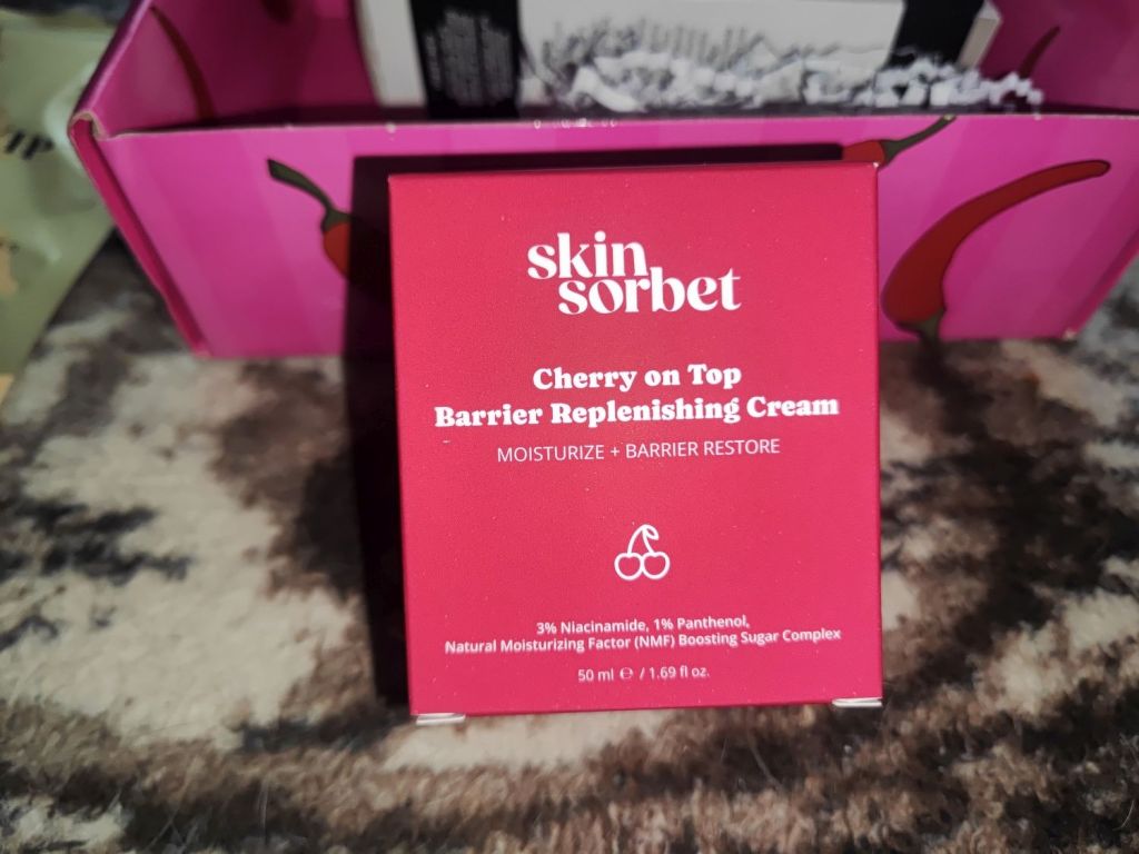 Skin Sorbet Cherry On Top Barrier Replenishing Cream is a quite expensive moisturizer that retails for around 23 euros. I’m always happy for moisturizers but the face serum from Skin Sorbet that we got two months ago didn’t impress me, so I hope this face cream will be better.